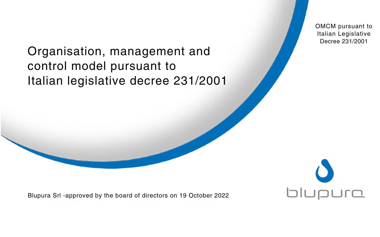 The Model 231 represents a set of procedures and activities aimed at preventing crimes and wrongdoing by those acting on behalf of the company. It arises from the need to comply with Legislative Decree June 8, 2001, no. 231, which introduced in Italy a regime of administrative liability for legal entities for certain offenses committed in their interest or for their benefit. Blupura, faithful to its mission of operating in compliance with laws and ethical values, has decided to adopt an Organisational Model that goes beyond mere regulatory compliance. Our goal is to ensure sound, transparent, and cutting-edge corporate management, protecting our stakeholders and the context in which we operate. In this section, you can delve into the details of our Model, get to know the Oversight Body, and understand how Blupura is committed on a daily basis to ensuring correct and responsible operations.