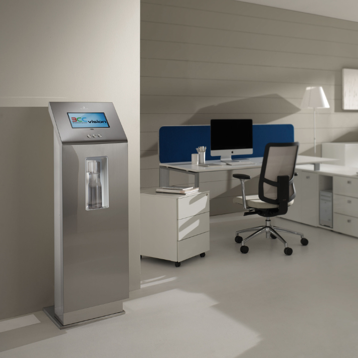 BCC ist ein Wasserausgabesystem, das nur eine Art von kaltem Wasser oder drei Arten spenden kann (kaltes stilles, kaltes mit Kohlensäure und stilles mit Umgebungstemperatur). Es ist mit Tasten aus Edelstahl (VANDALENSICHER IP65) ausgestattet und ist ganz aus Edelstahl mit Fleckenbehandlung gebaut. Es ist eine Fernbedienung mit integriertem Monitor enthalten, der die Anzeige von Informationen und Werbung über Video- und Audio -Bildschirm ermöglicht.