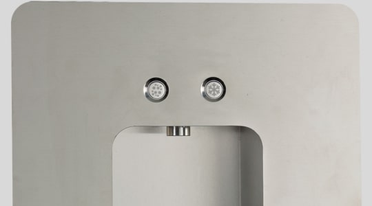 The wall-mounted still and sparkling water dispenser offers a unique and innovative design, suitable for any type of installation. It is the perfect combination of elegance and functionality, ideal for offices, homes, residences, prestigious condominiums and hotels. Wall is also a perfect solution for schools, hospitals and any environment where the installation of floor standing coolers is not possible for safety reasons. It has 1 or 2 mechanical buttons in stainless steel and is made of high quality materials such as stainless steel and anodised aluminium. It can be connected to any type of under-counter chiller, offering installation flexibility.