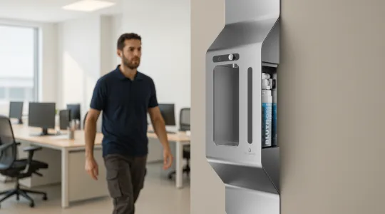 The Wall Zero wall-mounted tap represents the new frontier of sustainability: a 100% mechanical, zero-emission system that requires no electricity to operate. Its modern and minimalist design fits seamlessly into any environment, combining elegance, practicality, and structural solidity. It is the ideal solution for offices, hotels, residences, premium condominiums, and all shared spaces where floor-standing coolers cannot be installed for reasons of space or safety, such as schools, hospitals, and educational facilities.