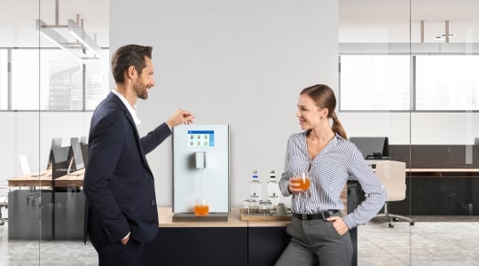 The concentrates (“bag in box” or “tank”) can be mixed, optionally, with still or carbonated cold water. Depending on your taste, it will then be possible to enjoy tea or carbonated orange soda! Whether it's a hotel or an office, the extreme versatility of Blujuice makes the latest Blupura novelty the most efficient way to cool off and enjoy a happy break.