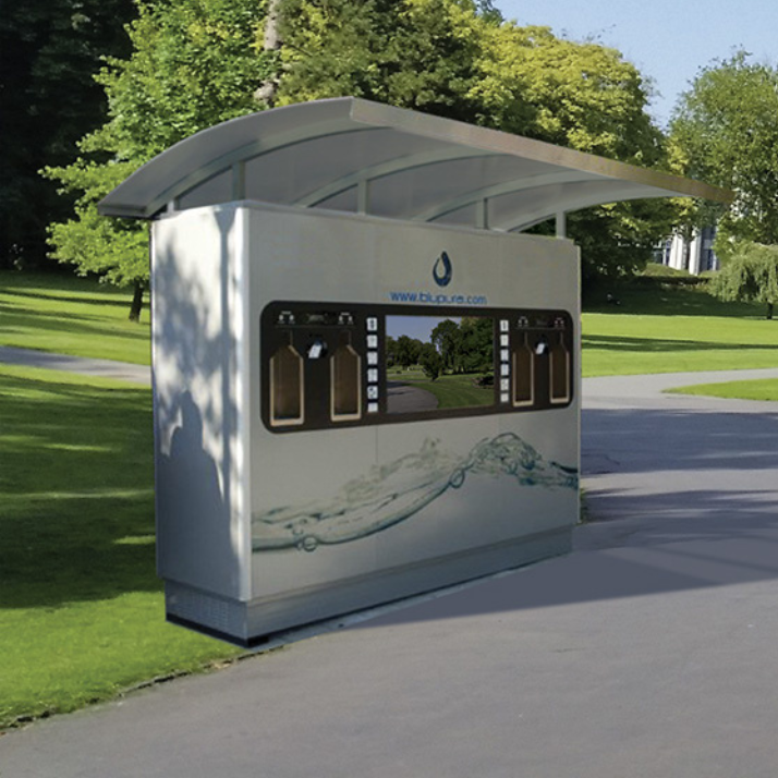 City 2.0, la fuente de alta gama de Blupura, ofrece dos punto de extracción y dispensa agua fría, ya sea sin gas como con gas, mediante un botón eléctrico de bajo voltaje. Ideal para dispensación gratuita o con monedas/tarjetas, es antivandálica y está fabricada con materiales aptos para su uso en exteriores. Incluye un techo protector que cumple la normativa, aislamiento interior a prueba de heladas, un estante para botellas e iluminación nocturna. Está equipado con una pantalla LCD de 40" protegida por un cristal antivandálico y antirreflectante donde pueden difundirse mensajes informativos o publicitarios. El sistema de filtración, aprobado por el Ministerio de la Salud italiano, incluye una lámpara UVC en línea y a la salida, y un sistema de recuento de los litros de agua dispensados. Está disponible con Box de 150lt/h o 280lt/h. La fuente es, de hecho, compatible con todos los sistemas de pago MDB, incluidas las tarjetas de pago. City 2.0 es la solución ideal para todas aquellas realidades de tamaño considerable y con un gran grupo de usuarios.