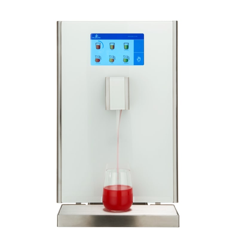 Los concentrados ("bag-in-box" o "tank") pueden mezclarse con agua fría con o sin gas. ¡Dependiendo de sus gustos, podrá disfrutar de un té o de una bebida gaseosa! Ya sea en un hotel o en una oficina, la extrema versatilidad de Blujuice hace que la última innovación de Blupura sea la forma más eficaz de refrescarse y tomarse un feliz descanso.