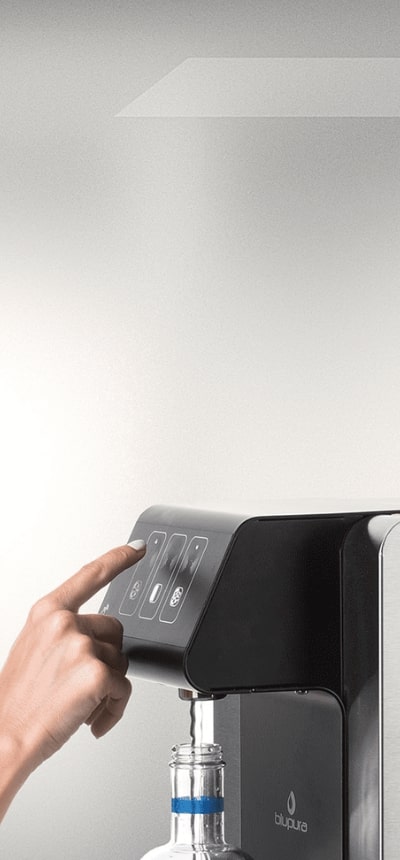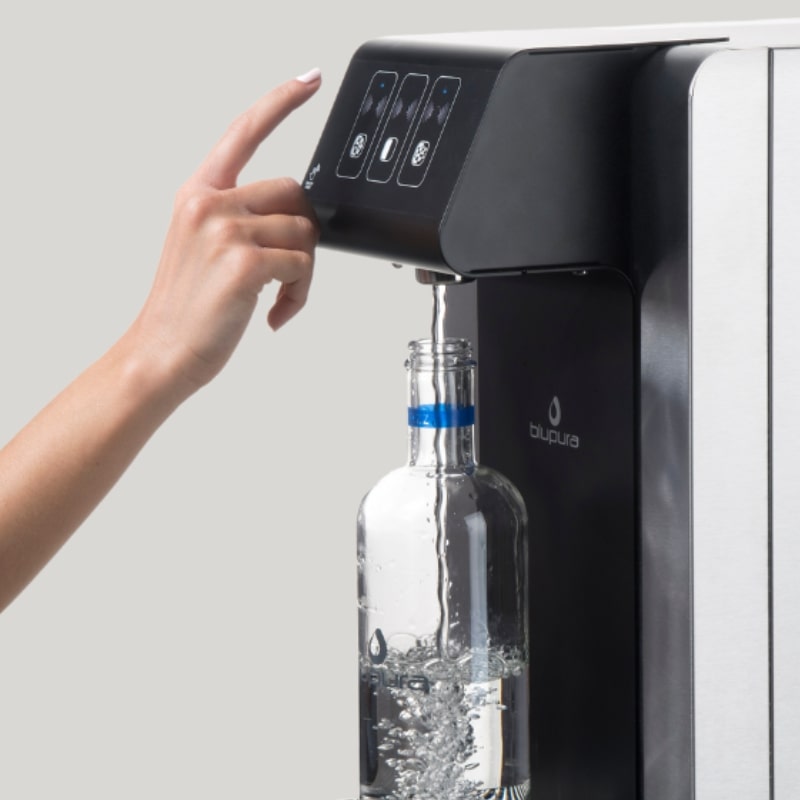 Gracias al mezclador, la versión Mix también dispensa agua fría ligeramente con gas. Además, los botones LED actúan como alarmas de seguridad para indicar que se ha acabado el agua con gas. En la versión Hot, los botones LED también proporcionan avisos de seguridad sobre el estado de la caldera. Un dispositivo de seguridad impide el suministro accidental de agua caliente.