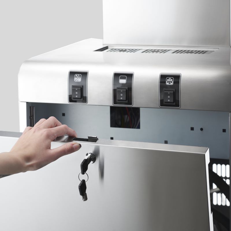 Los botones de doble función, que se encuentran en la parte inferior, ofrecen una cómoda experiencia de uso, mientras que la práctica apertura frontal hace que el mantenimiento y la inspección sean muy fáciles.