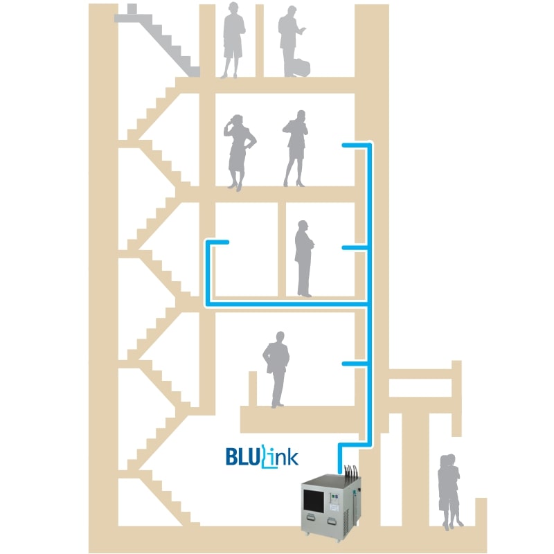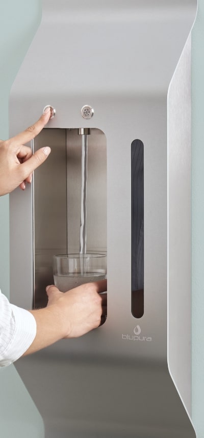 Rendimiento increíble, seguridad, higiene, funcionamiento silencioso, sin ocupar espacio en el piso. Wall puede conectarse individualmente o en serie (como en el sistema Blulink, basado en una unidad centralizada y varios puntos de dispensación, incluso en diferentes plantas) para ofrecer cantidades ilimitadas de agua fría, sin gas y con gas.