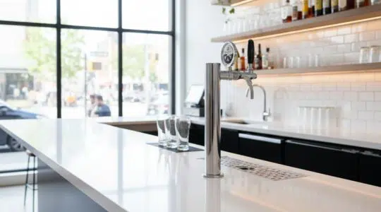 Par rapport à d’autres robinets du marché, T-Flow est doté d’un système interne de recirculation de l’eau qui maintient les conduits réfrigérés jusqu’au point de distribution, optimisant ainsi les performances.