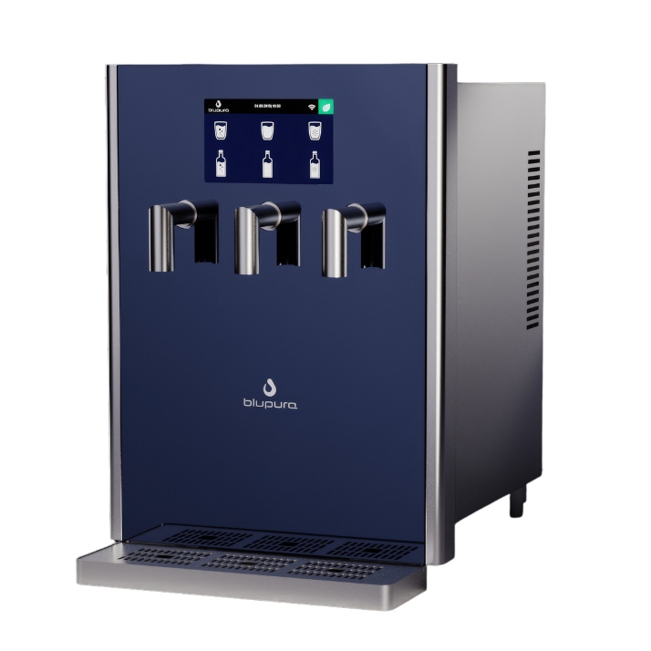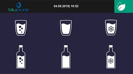 Bluglass Plus è il top di gamma che esprime il massimo del design e della tecnologia d’avanguardia, con sistema IoT di serie. Completamente gestibile attraverso un’interfaccia touch screen da 7”, permette di visualizzare diverse informazioni e parametri relativi alla macchina, nonché di ricevere avvisi sulla mancanza di CO2 o il riempimento della vaschetta raccogligocce.