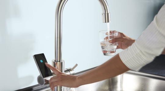 BluSeven is a 7-way dispenser that combines design, excellent construction quality, high performance and advanced technology. It is designed to blend seamlessly into kitchen units. The flat and elegant control panel allows easy cleaning and guarantees maximum hygiene. The first 5 ways are dedicated to filtered water, offering the options of room temperature, cold still, cold slightly sparkling, cold sparkling and hot with safety control. The remaining 2 ways are for unfiltered water, providing cold and hot water. In addition to the numerous dispensing possibilities, BluSeven can be connected as a hi-tech tap with the following under-counters: Blusoda Box 30 Fizz and Blusoda Box Hot 30 Fizz. Perfect for both home use and communal areas in offices.