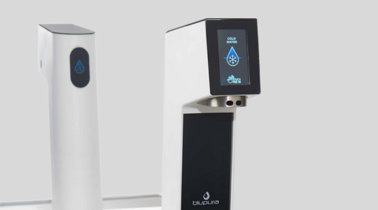 UNICO is the Blupura water dispenser, equipped with innovative technologies such as artificial intelligence and proximity sensors, which are used to independently fill any type of container. To start dispensing, simply approach the tap and position your container: UNICO automatically detects the presence of the flask or bottle and starts dispensing. Thanks to AI, UNICO stops automatically once the container is full. This dispenser can provide up to four types of water: hot water, natural cold water, sparkling water and room temperature water. Each tap dispenses only one type of water, therefore the dispensing station can be customised ad hoc according to requirements. UNICO, with the use of high quality and durable materials such as tempered glass and Corian, combines refinement and resistance. Its innovative design has been recognised and awarded with the iF Design Award 2023, one of the most prestigious awards globally in the field of design. UNICO's sensors are arranged in such a way as to guarantee accessibility even for children, for the elderly and for persons with disabilities, complying with the ADA (Americans with Disabilities Act) regulations. The steel grid present on UNICO is designed to avoid splashes or potentially dangerous wet floors. Inside, a Box150 and a filtration station consisting of a UV in, composite filtration and UV led out system are installed.