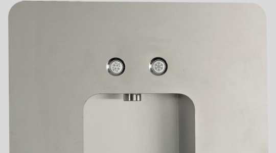 The wall-mounted still and sparkling water dispenser offers a unique and innovative design, suitable for any type of installation. It is the perfect combination of elegance and functionality, ideal for offices, homes, residences, prestigious condominiums and hotels. Wall is also a perfect solution for schools, hospitals and any environment where the installation of floor standing coolers is not possible for safety reasons. It has 1 or 2 mechanical buttons in stainless steel and is made of high quality materials such as stainless steel and anodised aluminium. It can be connected to any type of under-counter chiller, offering installation flexibility.