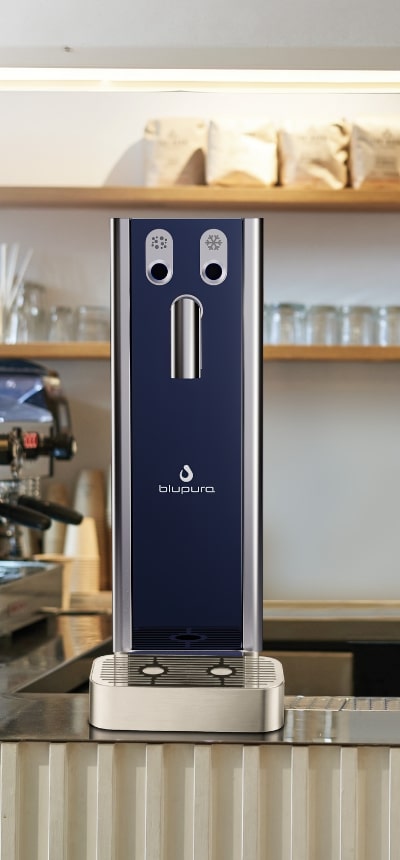 The design of Bluglass Tower is renewed in the Tower One version. Characterised by a single delivery route, it represents the ideal dispenser for anyone seeking beauty and optimal performance in a small space.