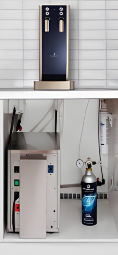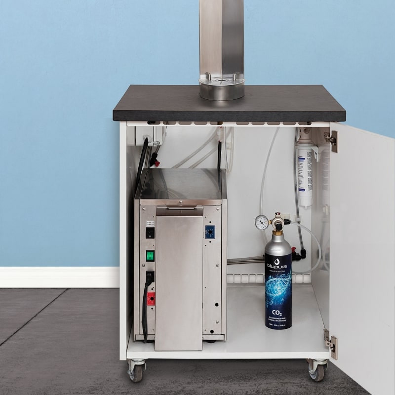Each Blupura undercounter cooler can be completed with the original dispensing heads or mechanical taps. Furthermore, all the Blupura Boxes find space in a discreet and functional way inside the units in every kitchen and in the furnishing of the "break" spaces in the office.