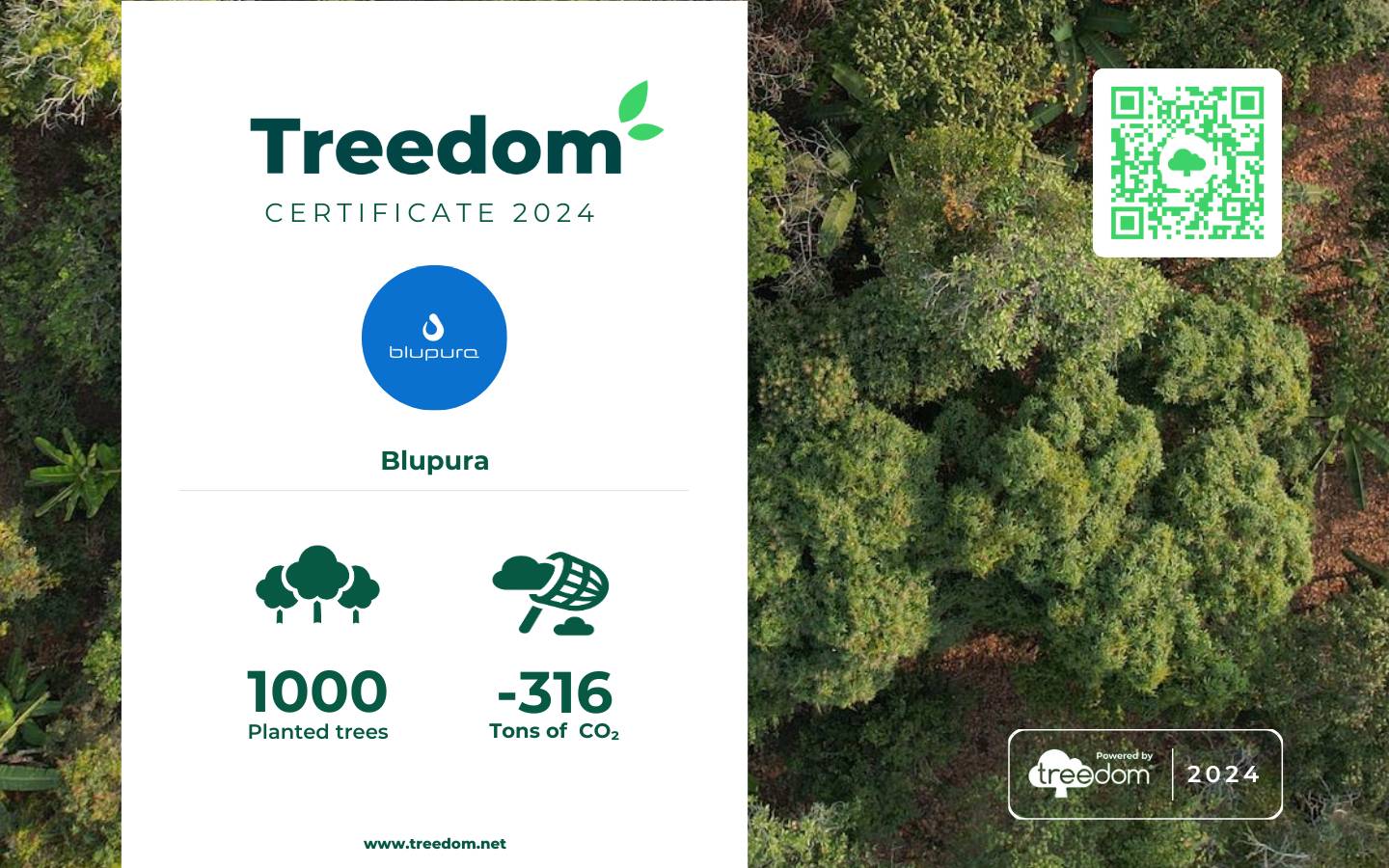 The Blupura Greenwood trees will contribute to improving biodiversity, combating soil erosion, and creating sustainable ecosystems. Thanks to the collaboration with Treedom, each tree will have a geolocated online page where its growth and positive impact can be tracked.